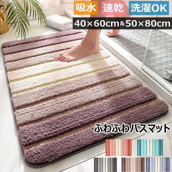 バスマット お風呂 マット 滑り止め 北欧風 ラグマット 滑らない 洗える 速乾 抗菌 無地 屋内 室内 浴室 家庭用 ふわふわ お洒落 厚手 吸水 オールシーズン 40×60cm 50 足ふきマット