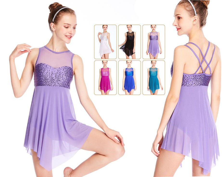 バレエドレス バレエ ダンス衣装 ユニタード レースドレス ノースリーブドレス オールインワンインナー付き ストレッチ 着心地いい ドレス イレギュラー裾 ヨガ ラテン レッスン着 スパンコール付き