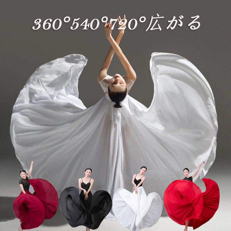 ダンススカート ロング丈 大きい裾 広がる360° 540° 720° シフォン二枚生地 フレア ボリューム スカート レディース 大人 バレエ ワルツ 社交ダンス 練習着 レッ フラメンコ