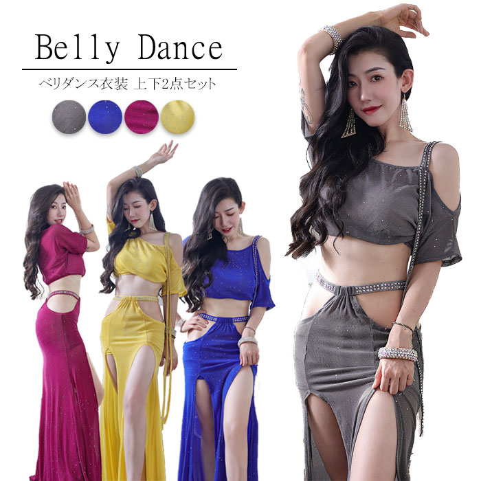 ベリーダンス 衣装 セット レッスン着 練習着 セットアップ ラメ入り キラキラ ダンス衣装 社交ダンス ステージ衣装 舞台衣装 ダンス レディース トップスとスカート 2点セッ 発表会