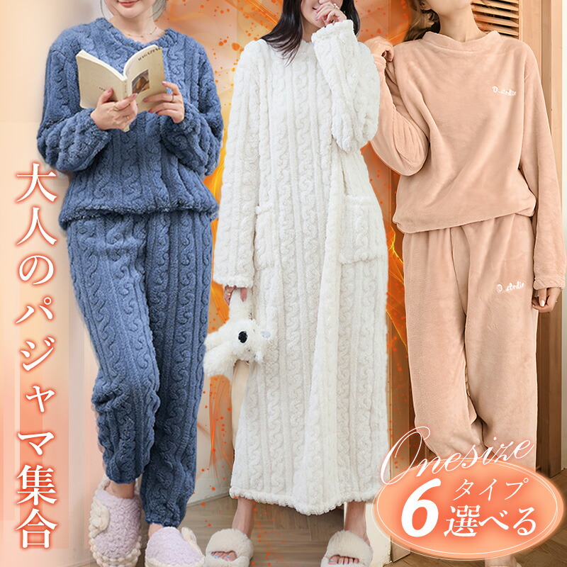 もこもこ パジャマ ルームウェア 長袖 厚手パジャマ レディース 冬用 暖かい 防寒 フリース素材 部屋着 ゆったり 上下セット ロングワンピース ふわふわ 柔らかい リラックス シンプル 肌触り良い