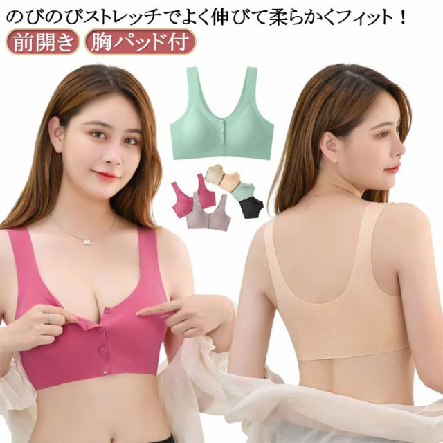 前あき ブラ 伸縮 肌着 ラクブラ ひびきにくい 術後 ブラトップ ホックなし きりっぱなし インナー 下着 ハーフトップブラ トップス ストレッチ 全開 前開きブラノンワイヤーブラジャー 胸 乳がん