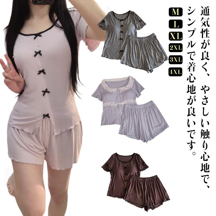 カップ付き パジャマ レディース パンツセット パンツ 半袖 ショートパンツ 上下セット 薄手 フリル レース ルームウェア 寝巻き ナイトウェア 部屋着 かわいい セットアップ t 選べる2Type