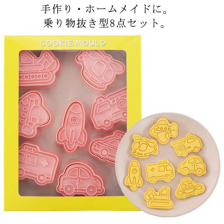クッキー型 クッキー型抜き お菓子作り 製菓道具 お菓子 建設車両 手作り 可愛い 乗り物 かわいい型枠 スタンプ 8点セット クッキー 消防車 船 パイロット ショベルカー おうち時 救急車