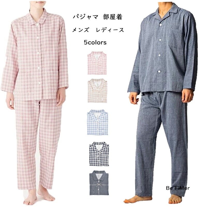 パジャマ レディース 上下セット ペアパジャマ ズボン メンズ 綿100% ダブルガーゼ 長袖 前開き ルームウェア ペアルック おしゃれ かわいい 秋冬 快適 部屋着