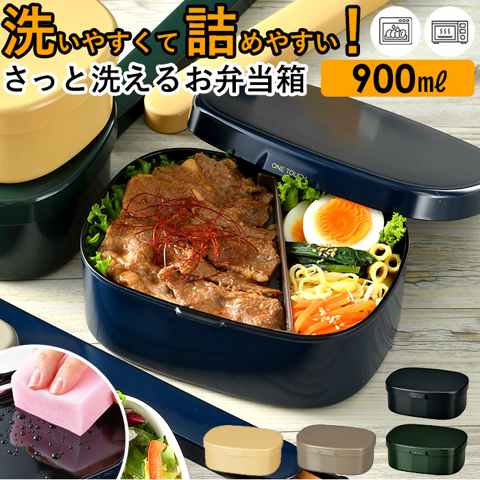 弁当箱 男子 通販 ハコヤ ランチボックス 900 大容量 お弁当箱 1段 メンズ さっと洗えるお弁当箱 ワンタッチランチ 食洗機対応 レンジ対応 洗いやすい 大人 おしゃれ 日本製