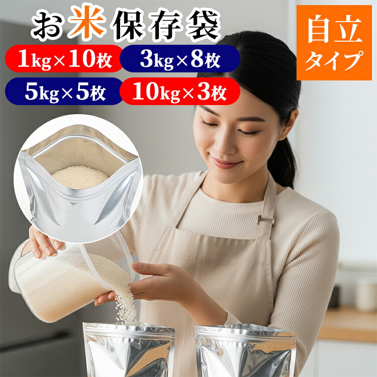 お米保存袋 米袋 密閉 米びつ チャック付き 3kg 5kg 10kg お米 保存容器 アルミ袋 ライスストッカー ライスボックス 米櫃 ジッパー付き 遮光 冷蔵庫 野菜室 炊飯 食品 コンパク 鮮度