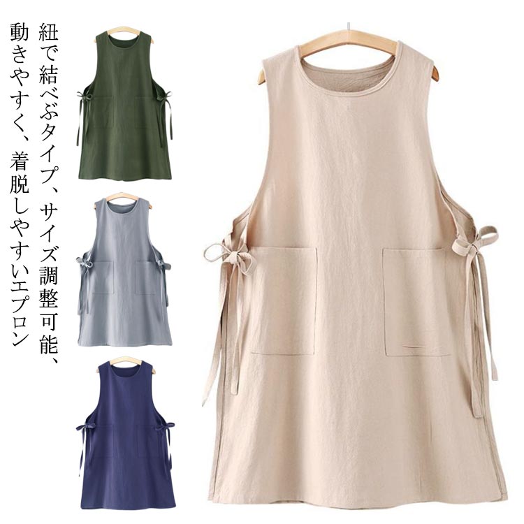 エプロン 可愛い かわいい レディース 大人 保育士 着脱簡単 習い事 家事 料理教室 クッキング シンプル 無地 体型カバー ガーデニング デイリー使い ベージュ ブルー グレー グリーン