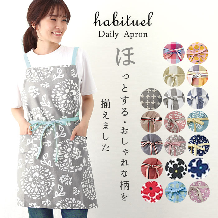 エプロン おしゃれ 通販 保育士 レディース ナチュラル 前結び たすき掛け habituel 大人 かわいい シンプル ショート丈 コットン お稽古 家事 料理教室 配膳用 習い事