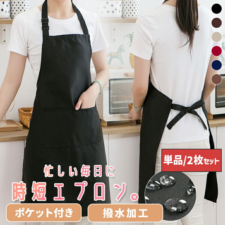 エプロン 無地 型 シンプル 首掛け かぶるだけ おしゃれ 業務用 仕事 保育士 カフェ 店 レストラン 料理 撥水 学生 男女兼用 レディース メンズ 男性 女性 黒 大きいサイズ ポリエステル