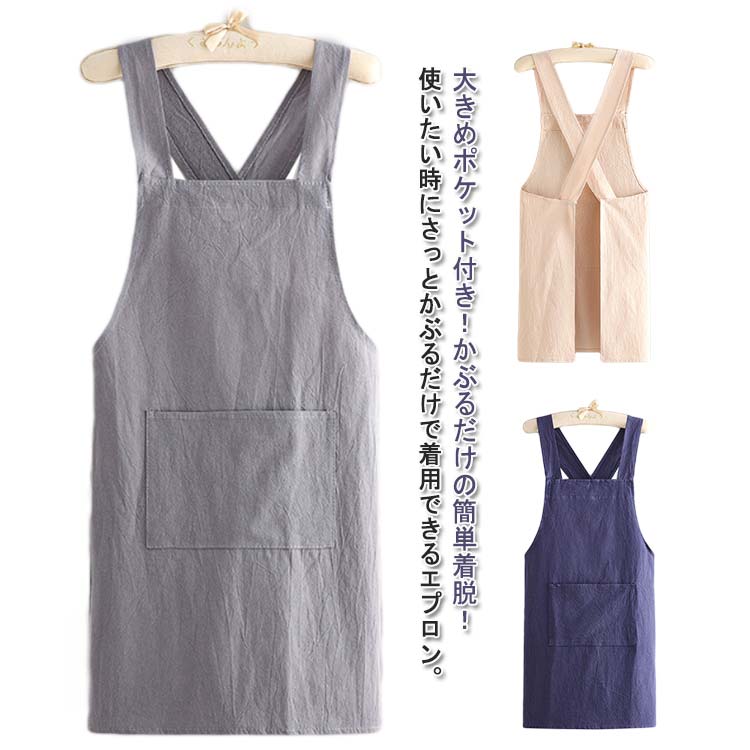 エプロン 女性用 北欧風 可愛いドレスエプロン ワンピースエプロン カフェ ユニフォーム 花屋 X型 撥水加工 リネン 綿 レディース シンプルエプロン 可愛い ポケット付き