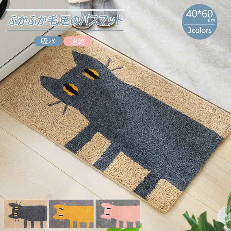 バスマット 猫柄 速乾 吸水 玄関マット 約40×60cm 50x80cm 防臭 厚手 足拭きマット ホテル エステ 干し風呂マット サラサラ シンプル 洗える 滑り止め 新生活 おしゃれ