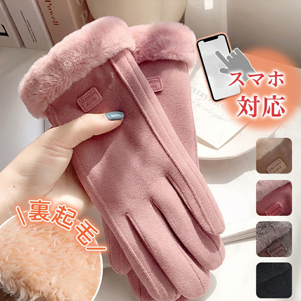 手袋 レディース 秋冬 おしゃれ かわいい 暖かい スマホ タブレット 寒さ対策 黒 ボア 手首 スマホ手袋 裏起毛 フワフワ 5本指 通勤 通学 普段使い 防風 保温 ギフ 防寒