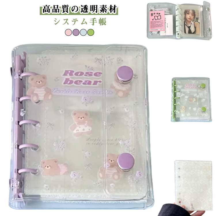 シール帳 システム手帳 クリア手帳 A7サイズ 透明バインダー 6穴リング DIYデコ リフィルセット カスタマイズ手帳 ミニ手帳 コンパクト手帳 PVCカバー 推し活 方眼 スケジュール帳