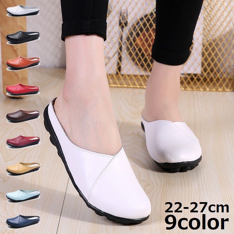 歩きやすい ぺたんこ フラット 軽い 本革 レザー レディース スリッポン バブーシュ ミュール クロッグ サボサンダル スリッパ