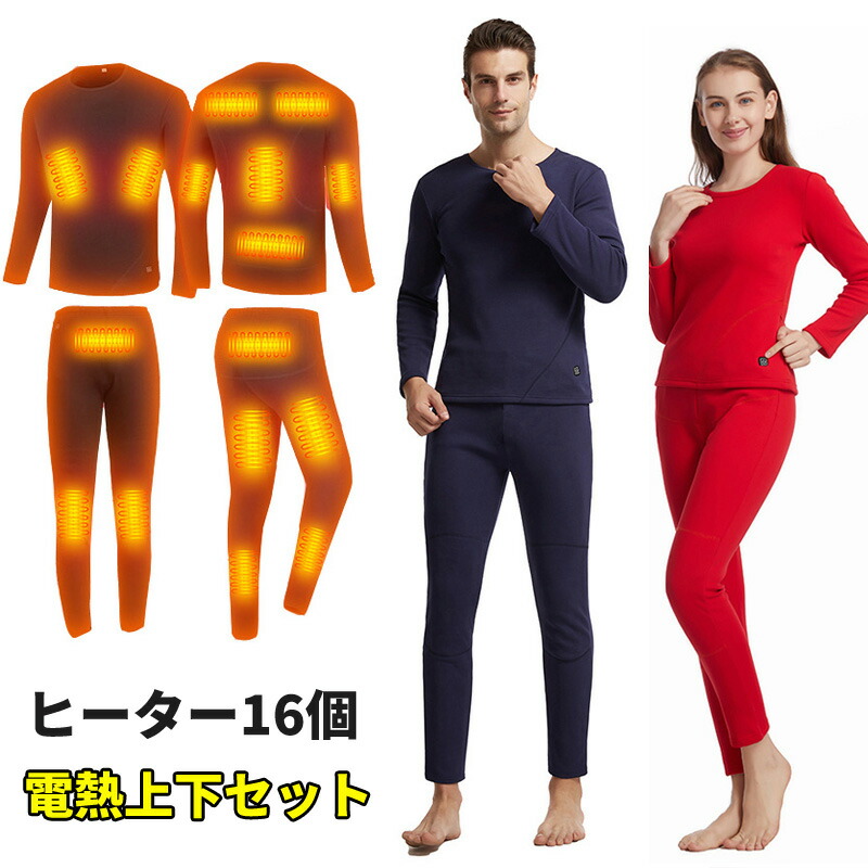 電熱インナーウェア 上下セット 電熱トップス 電熱パンツ ヒートインナー ヒーター付き防寒着 電熱ズボン メンズ レディース 加熱服 暖房付き 柔らかい 両親のプレゼント バッテリーなし ストレッチ