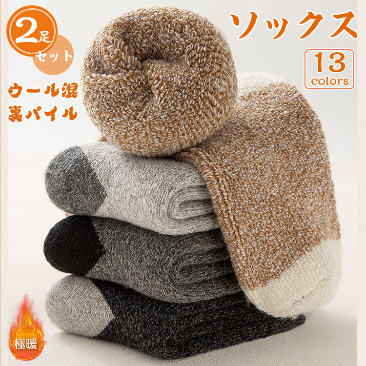 ウール混ソックス 靴下 パイルソックス メンズ くるぶし おしゃれ ソックス セット クルー丈 黒 綿 ミドル 2足セット 冬 秋冬 アンクル ウールソックス 保温 あたっか くつ下 ムレ 冷えとり