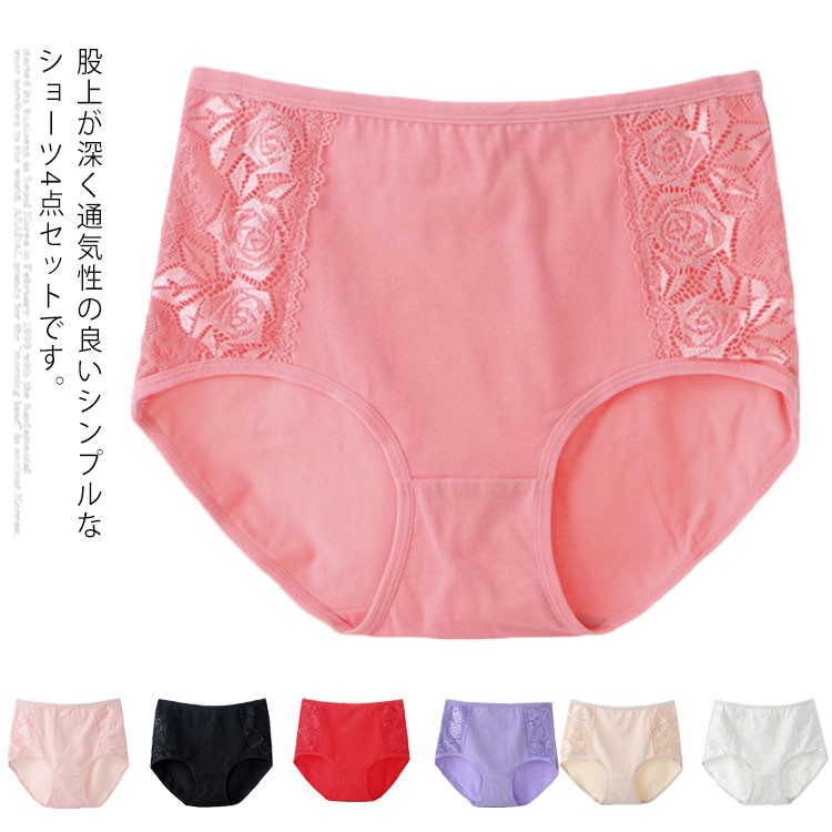ショーツ レディース 綿 お得な4枚セット 深め ハイウエスト 下着 アンダーウエア レース 女性用 大きい ストレッチ 伸縮性 通気性 インナー セクシー オールシーズン 柔らかい 肌着