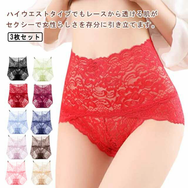 3枚セット 選べる10色×5サイズ レースショーツ レディース 総レース ショーツ シームレスショーツ ハイウエストレースショーツ ランジェリー 下着 シースルー 花柄 柔らか 透け セクシーショーツ