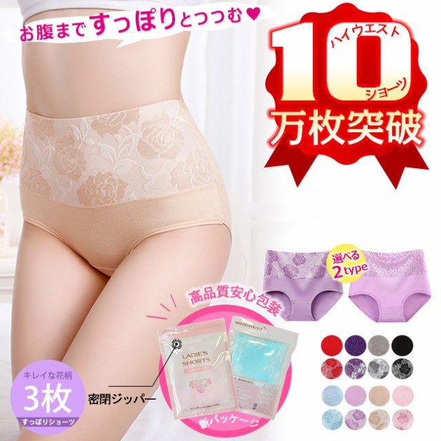 3枚セット ハイウエストショーツ 綿ショーツ 花柄 2タイプ 秋 春 夏 冬 腹巻ショーツ 腹保温 温活 綿 おなかすっぽり 美尻 新作 深履き 自社製品 暖かい 裏起毛ショーツ 震災の揃え あったか
