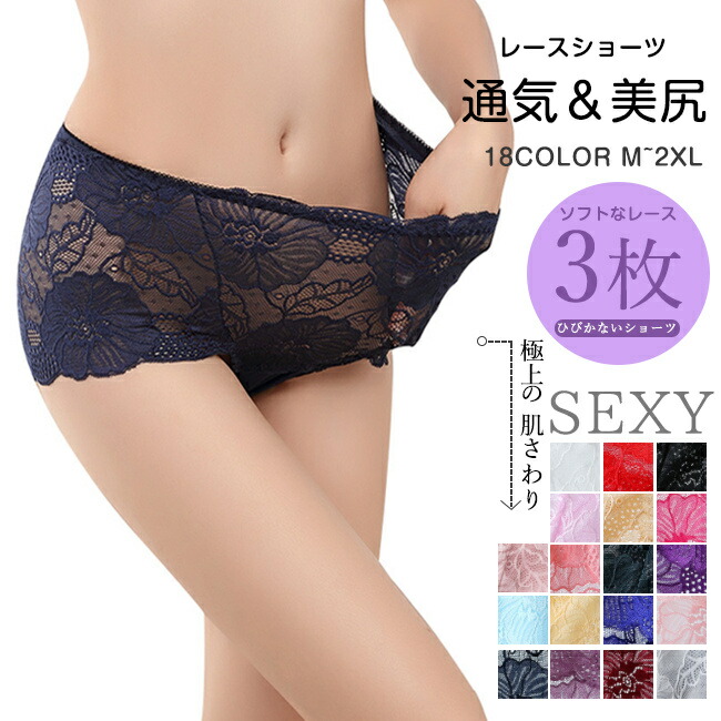 3枚セット 総レースショーツ レディース ショーツ セット パンツ 下着 女性 かわいい おしゃれ シームレス 女性下着 美尻 レディースファッション パンティー レディースショーツ 無地