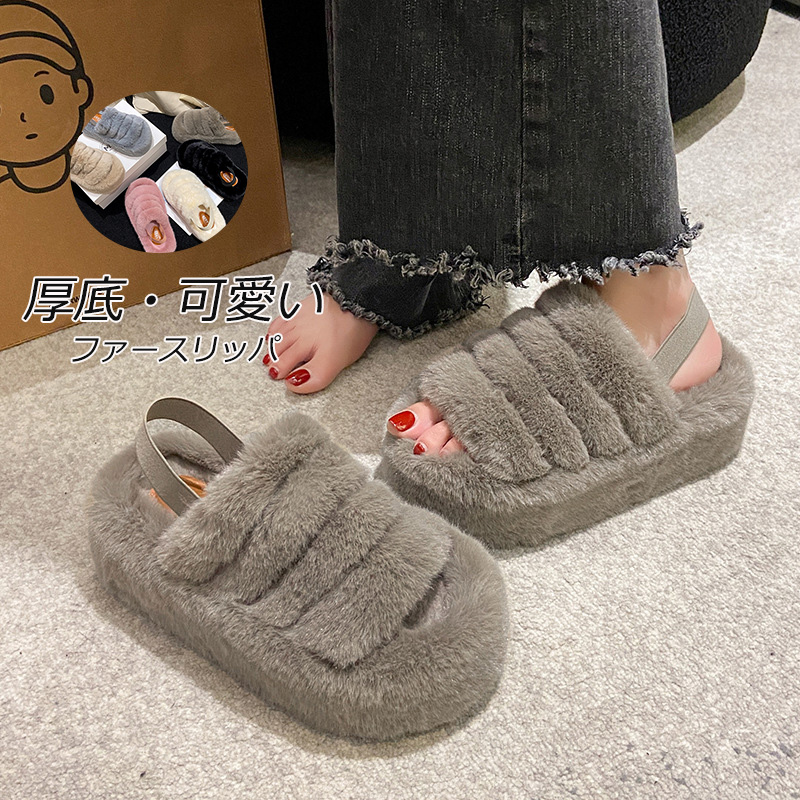 早秋!トレンドファー付きミュール モコモコ 可愛い ファーシューズ 部屋着 ルームシューズ