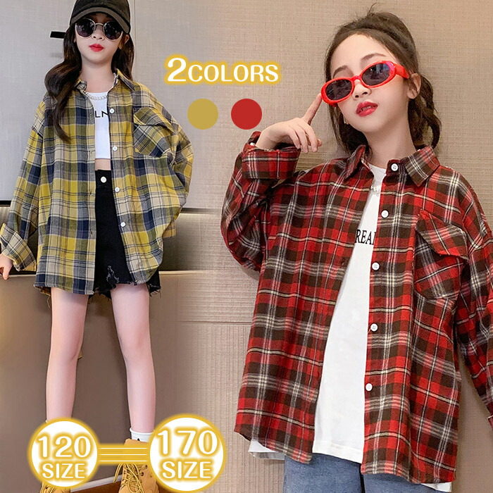 チェックシャツ シャツ キッズ シャツジャケット タータンチェック シャツアウター 長袖シャツ トップス 春シャツ ベーシック カジュアルシャツ 上着 女の子 女児 春秋 前開き 長袖 着やせ