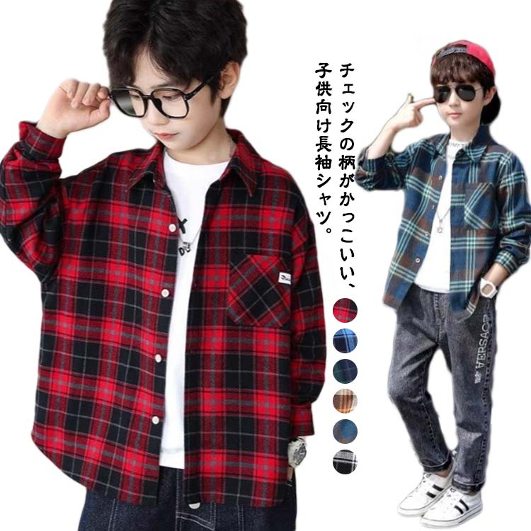 子供服 長袖 150 ブラウス 秋物 チェックシャツ トップス カジュアルシャツ キッズシャツ チェック柄 キッズ 子供シャツ 春服 羽織り ボーイズ こども服 韓国子供服 秋服 ジュニア 綿 シャツ