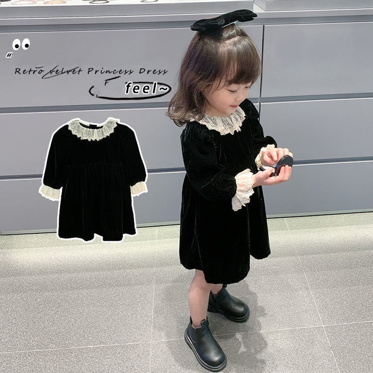 女の子らしい可愛いワンピース プリンセル シンプル 優雅さをプラス 100 110 120 130 140 黒 ライン ハロウィン 仮装 チュニック ダンス イベント 通学 舞台 暖かい