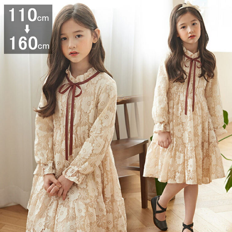 子供 ドレス ワンピース 裏起毛 ピアノ発表会 110-160cm 七五三 子ども フォーマル 結婚式 可愛い 通学 通園 入学式 演奏会 ジュニア お揃い 長袖 ベージ ガールズ