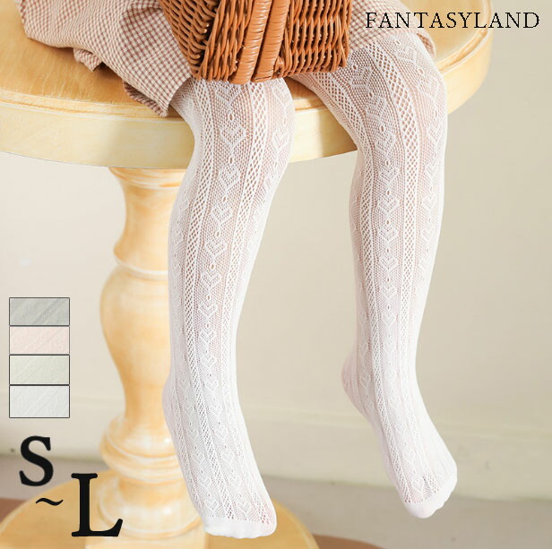 キッズ レーシーフラワーラッセルタイツ 子供用 ハート 白 ホワイト S M L 95~150cm靴下 タイツ 子供 子供用靴下 発表会 入園式 幼稚園 網タイツ ネットタイツ 結婚式