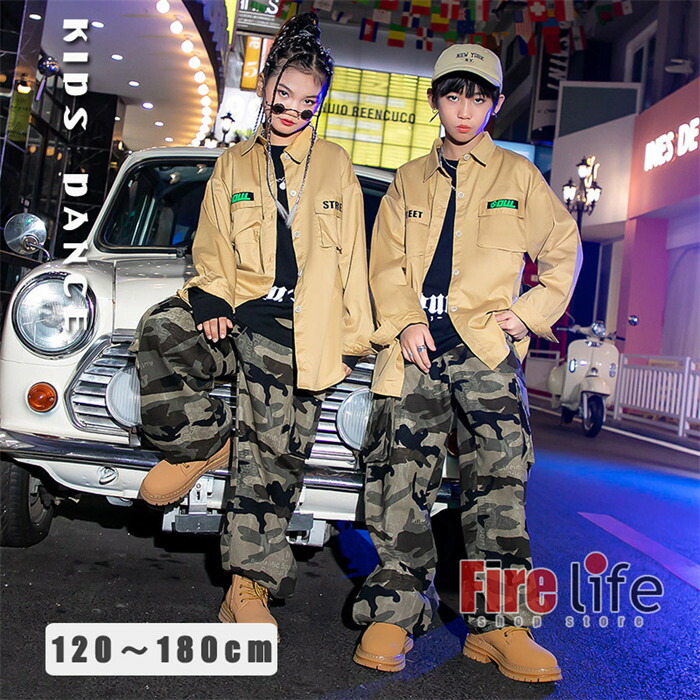 キッズダンス 衣装 迷彩柄 長袖シャツ 迷彩パンツ 単品ORセットアップ ヒップホップ 女の子 男の子 派手 ダンスウェア 演出服 ジャズ