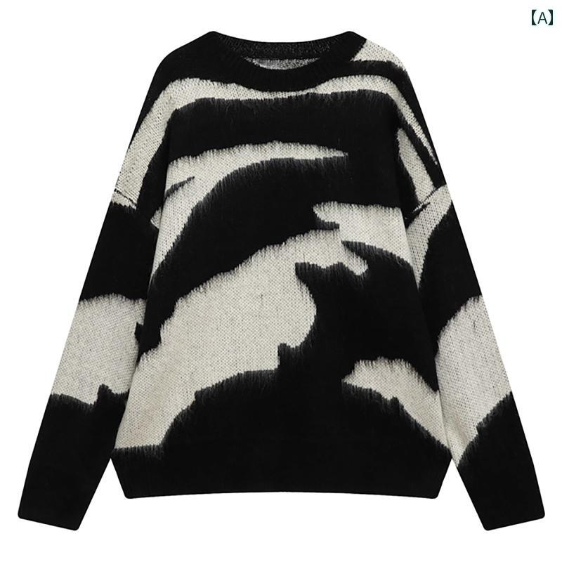 メンズ ファッション 春夏 秋冬 かっこいい オシャレ モテ 男性用 紳士服 服 韓国 シンプル 大人 ストリート アメリカン レトロ スタイル 黒 ラウンドネック セーター カジ 白の