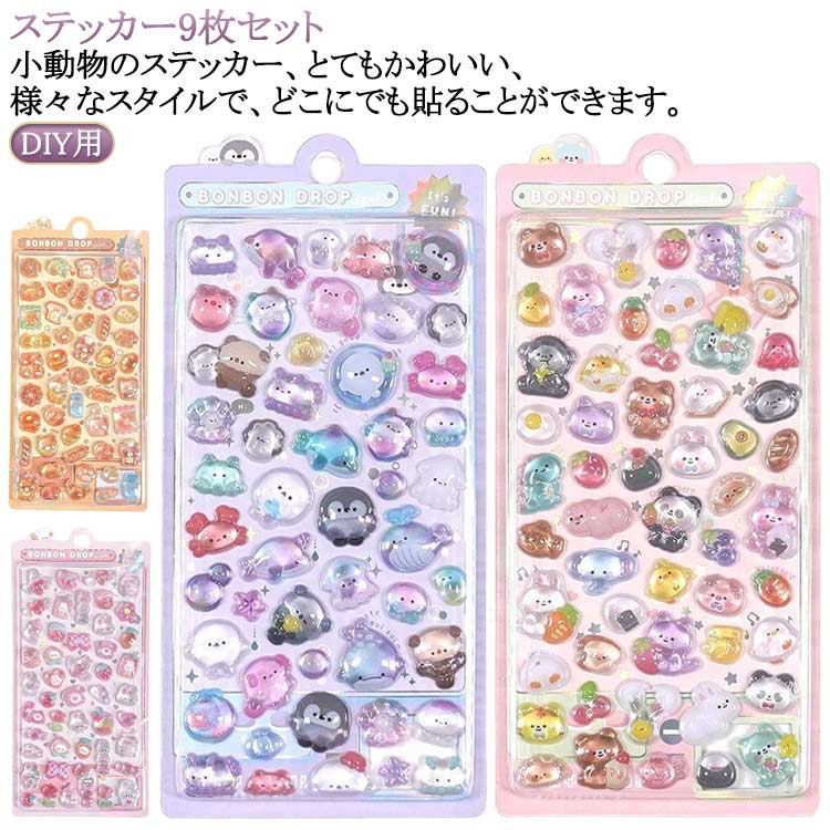 ドロップシール 3D 立体シール ドロップ ぷっくり つやつや キラキラ かわいい 動物 ぷくぷく 女の子 シール 交換 シール帳 ぷにぷに スマホケース コレクション ギフト ボンボン