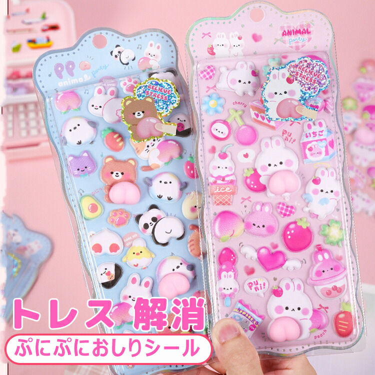 おしりぷにぷにシール かわいい ぷくぷく キャラクター 3D ふわふわ もちもち もっちりスクイーズ ステッカー シール帳 デコレーション おしり シール 可愛い うさぎ ご褒美シー ル 立体 くま