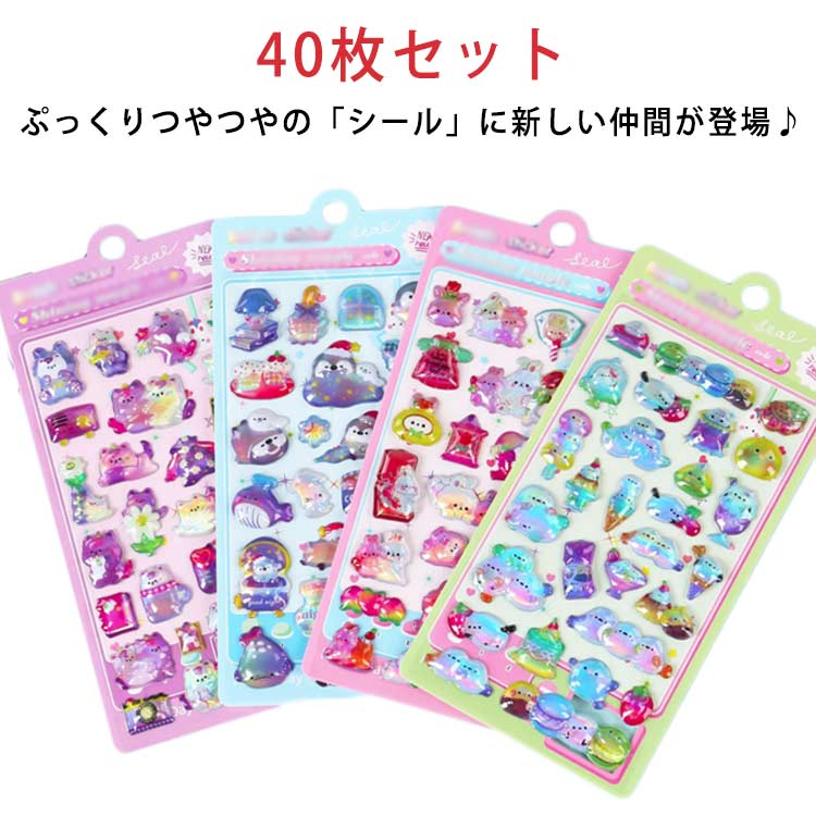 DIY用 可愛い シール 日記帳用 つやつや ぷっくり 40枚セット 3D 装飾用 ぷくぷくシール かわいい 手帳 女の子 キラキラ 立体 デコシール 子供 贈り物 ステ ごほうびシール