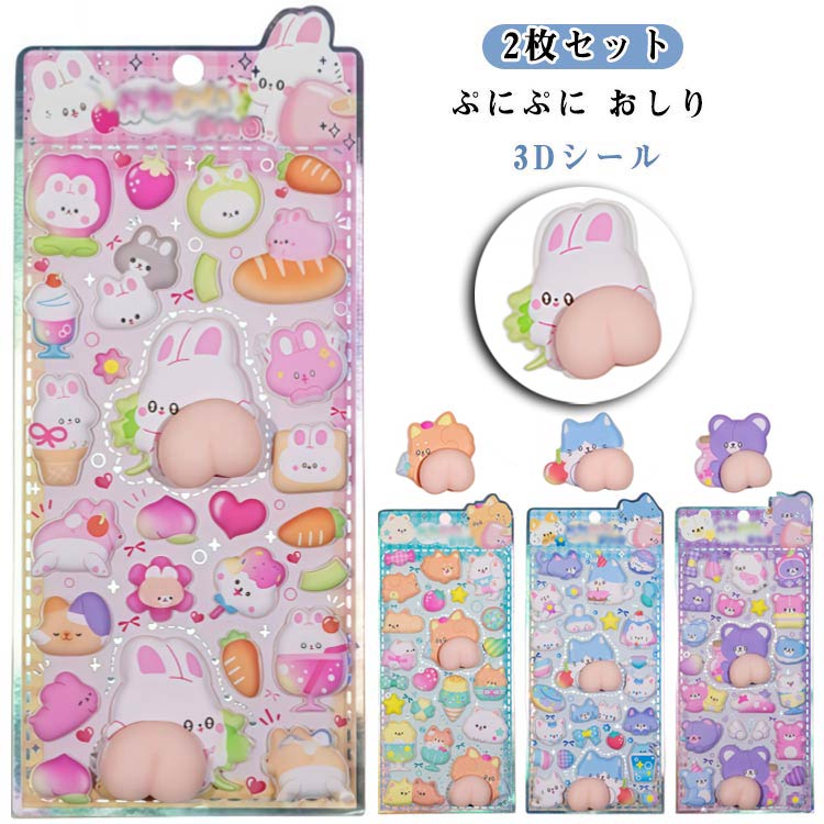 2枚セット シール 立体 3D ぷくぷくシール おしり ぷにぷに ご褒美シール スクイーズ ストレス 解消 日記帳用 DIY用 手帳用 携帯電話ケース 可愛い 手芸用品 装飾用 ステ かわいい