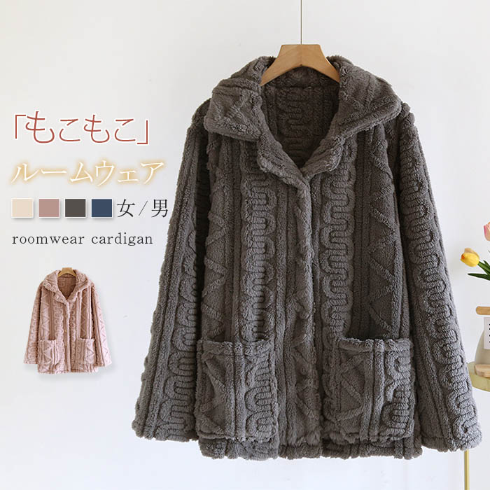 もこもこ パジャマ レディース メンズ 冬 ルームウェア 単品 前開き 長袖 トップス かわいい カーディガン ベロア 厚手 ゆったり 可愛い あったか 部屋着 ナイトウェア 快 暖かい