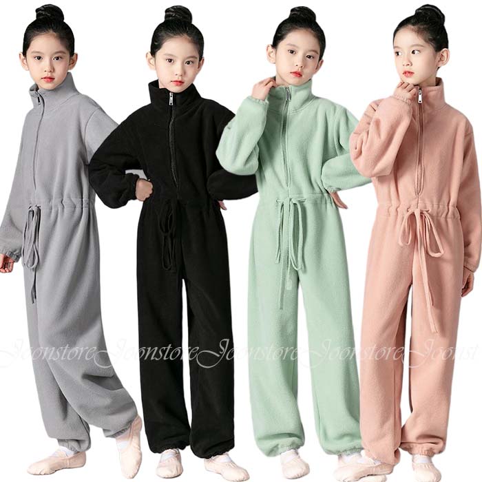 バレエ ウォームアップ オールインワン キッズ ジュニア サロペット バレエ用品 長袖 練習 レッスン着 秋冬 もこもこ 女の子 子供 ヨガ ウェア お稽 ダンスウェア