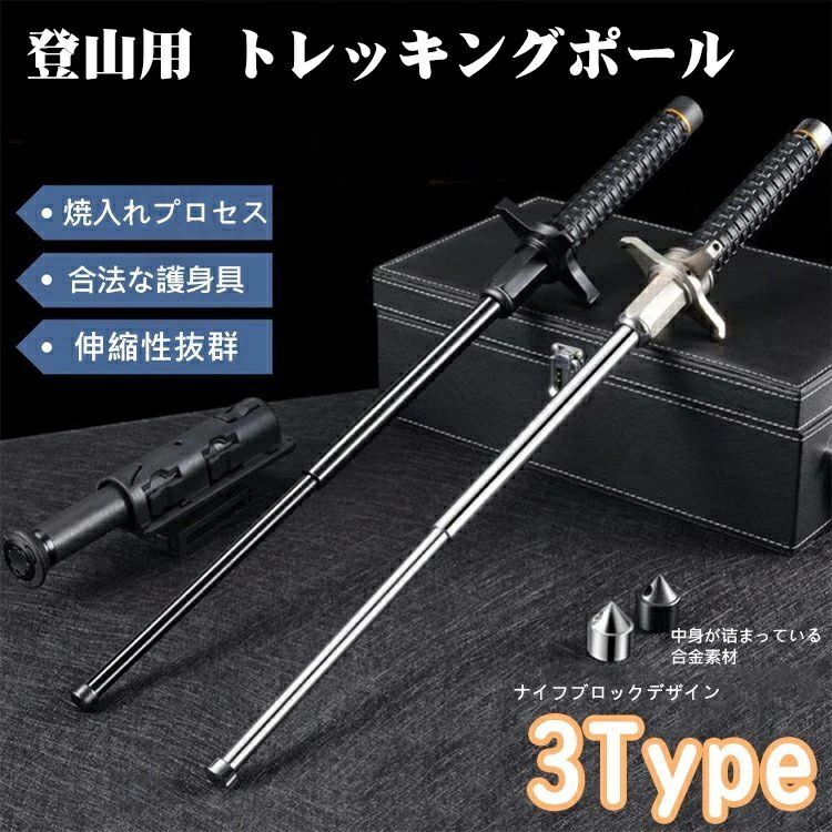 登山用 トレッキングポール 杖 折り畳み 伸縮 調整可能 護身用