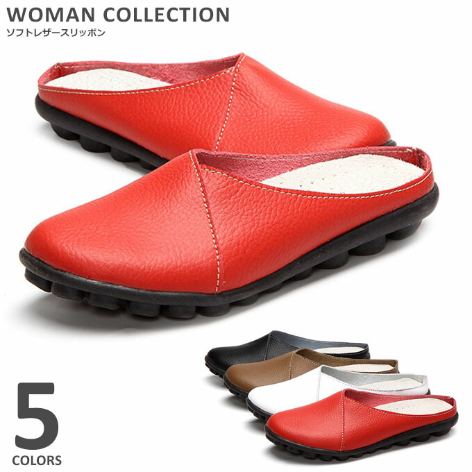 サンダル レディース つっかけ スリッポン おしゃれ かかとなし 赤 白 スニーカー 高齢者 かかとなしシューズ 革