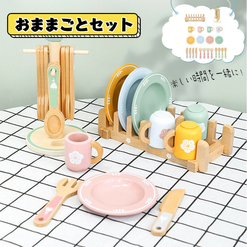 おままごと おもちゃ 木製 食器セット プレート スプーン カップ ままごとセット 室内&室外遊び 知育玩具 学習 バースデー 誕生日 クリスマス プレゼント 入園祝い 親子遊び 保育所 児 出産祝い