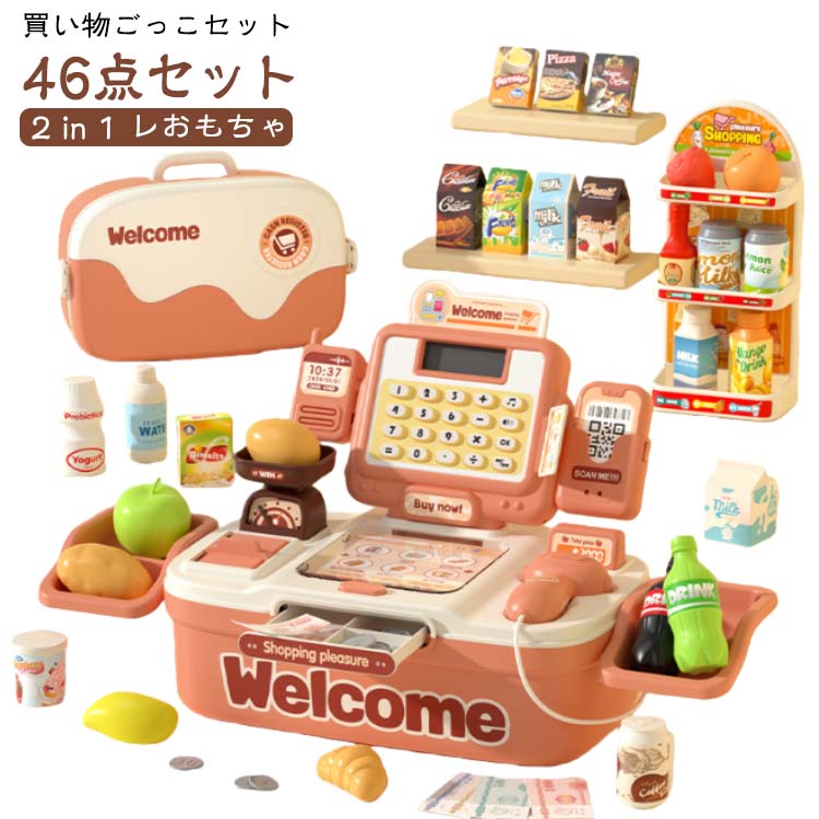 46点セット 買い物ごっこセット おままごとごっこ レセット お店屋さんごっこ遊び レジごっこ 紙幣とコイン付 計算機能付き お会計 誕生日 クリスマス お店屋さん ままごと ごっこ遊び プレゼント