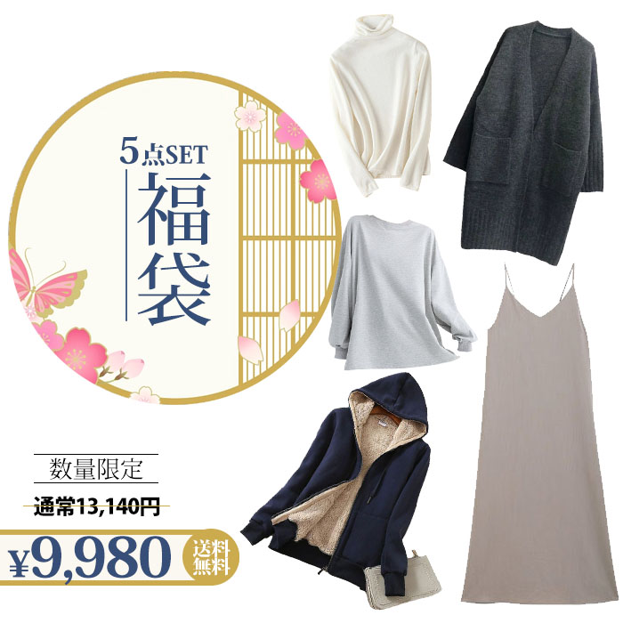 福袋 2026 レディース おまかせ5点詰め込み福袋 裏起毛コート 秋冬 コーディガン ニット セーター 新春 ニットセーター カーディガン キャミソール キャミワンピース トレ 5セット