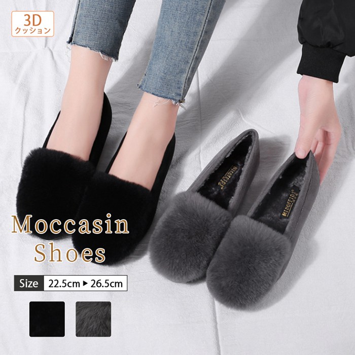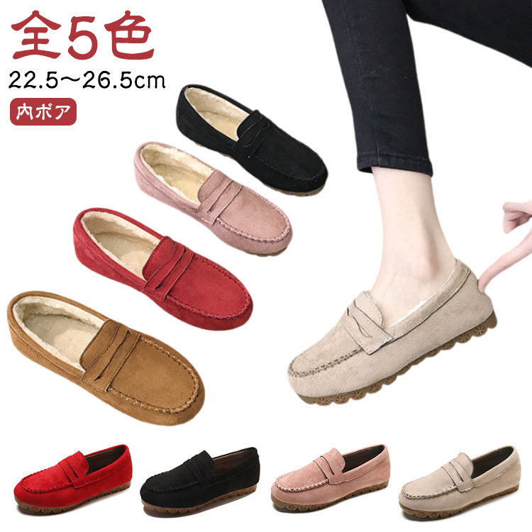 モカシン レディース ボア ムートン 靴 暖かい ボアフリース シューズ ぺたんこ あったか 防寒 保温 歩きやすい モカシンシューズ フラット ローファー もこも パンプス