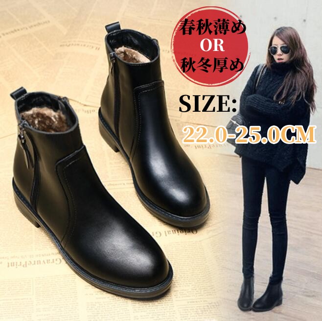6タイプ ショートブーツ レディース ローヒール PU 黒 痛くない 履きやすい 柔らかい 歩きやすい きれいめ 通勤 美脚 大きいサイズ ボア付き サイドジップ 防寒 21.5 22.0 22 秋冬
