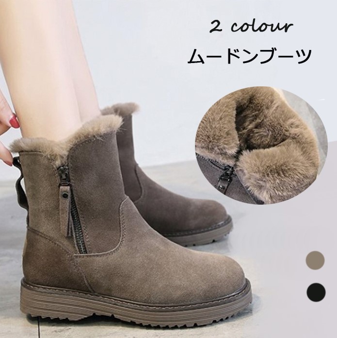 ムートンブーツ レディース スノーブーツ ブーツ レディース ミドルブーツ レディース フアー ファー付き 走れる 痛くない もこもこ