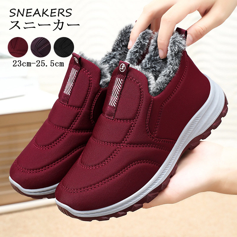 【防寒効果抜群】送料無料 秋 冬 スニーカー 走れるブーツ スノーシューズ 冬 裏起毛 通勤 通学 脱ぎ履きしやすい ママ プレゼント ブラック レッド 自転車 登山 防寒対策 幅広