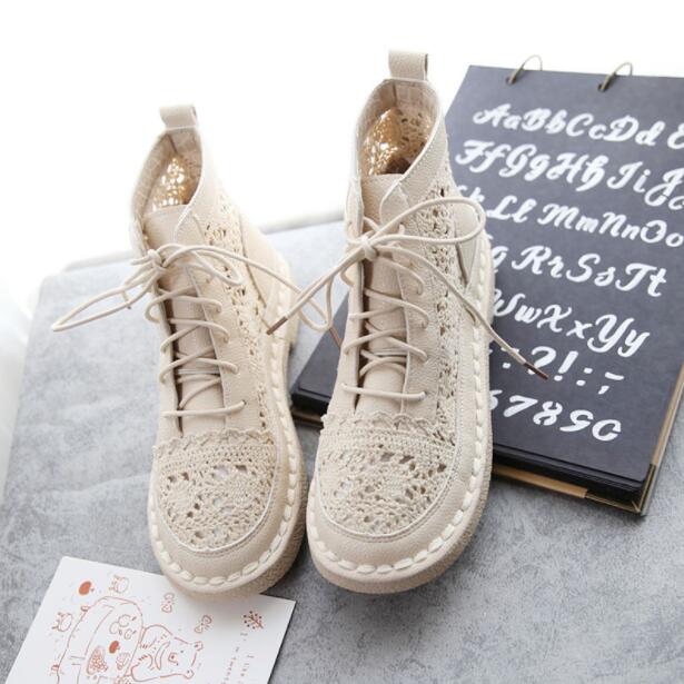 サマーブーツブーツサンダル総レースレースアップシューズショートブーツサンダルローヒール夏シースルー森ガール透かしレディース靴夏ブーツ 疲れない靴 サマーブーツ
