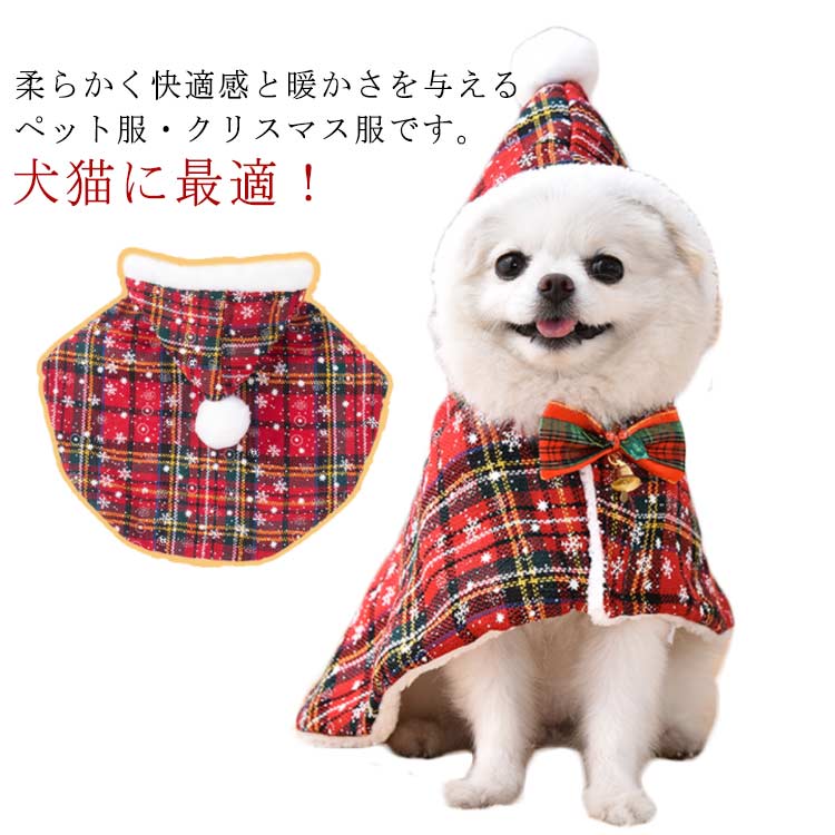 コスプレ 犬猫 帽子付き ケープ コスチューム 服 犬 ポンチョ 洋服 かぶりもの 犬服 ペット マント サンタ サンタローブ 猫 仮装 サンタクロース クリスマスマント